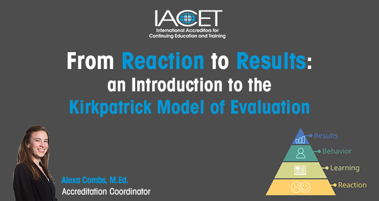 For more information on Kirkpatrick’s Four Levels of Evaluation check out this IACET Resource: Kirkpatrick’s Learning and Training Evaluation Theory